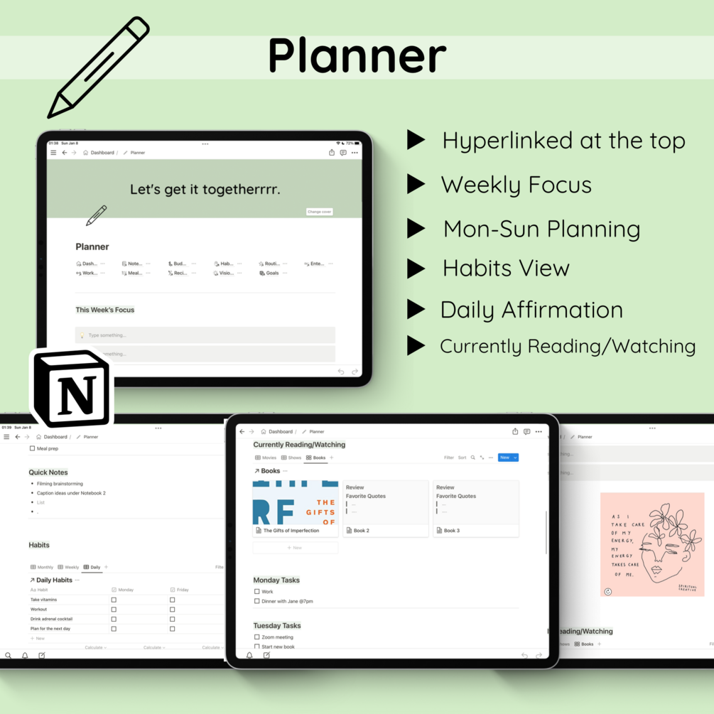 For use on the Notion app on iPads/Tablets, laptops/desktops and phones
